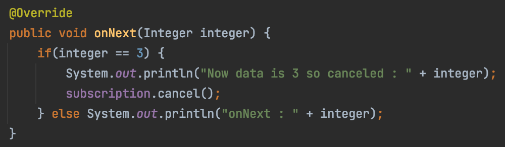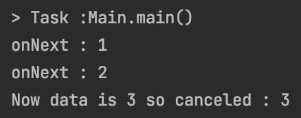 Flowable.subscribe()에서 통지된 데이터가 3일 때 구독을 해지하는 과정