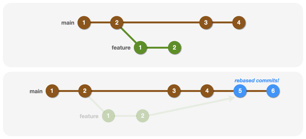 - rebash and merge는 메인 브랜치와 분기된 브랜치 둘 다에 새로운 커밋이 존재하는 상태에서 병합이 진행되지만, fast-forward merge는 메인 브랜치에는 변경 사항이 없는 상태에서 병합됩니다.