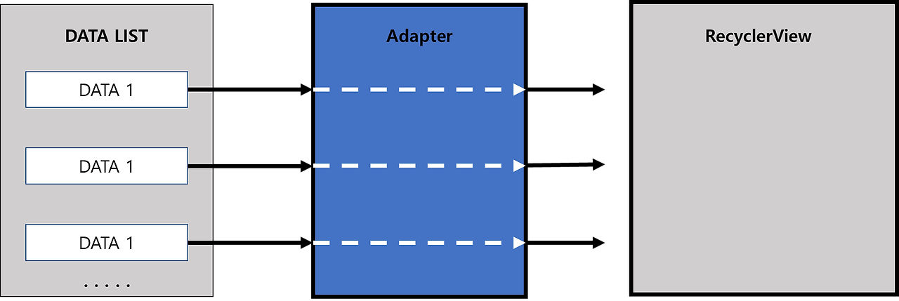 Adapter는 RecyclerView에 표시될 아이템 View를 생성해줍니다. 사용자 데이터 리스트로부터 아이템 뷰를 만드는 것, 그것이 Adapter의 역할입니다.