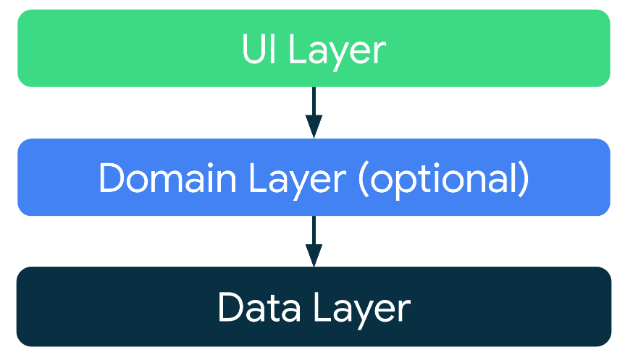 다이어 그램의 화살표는 클래스 간의 종속성을 나타냅니다. 예를 들어 Domain Layer는 Data Layer 클래스에 종속됩니다.