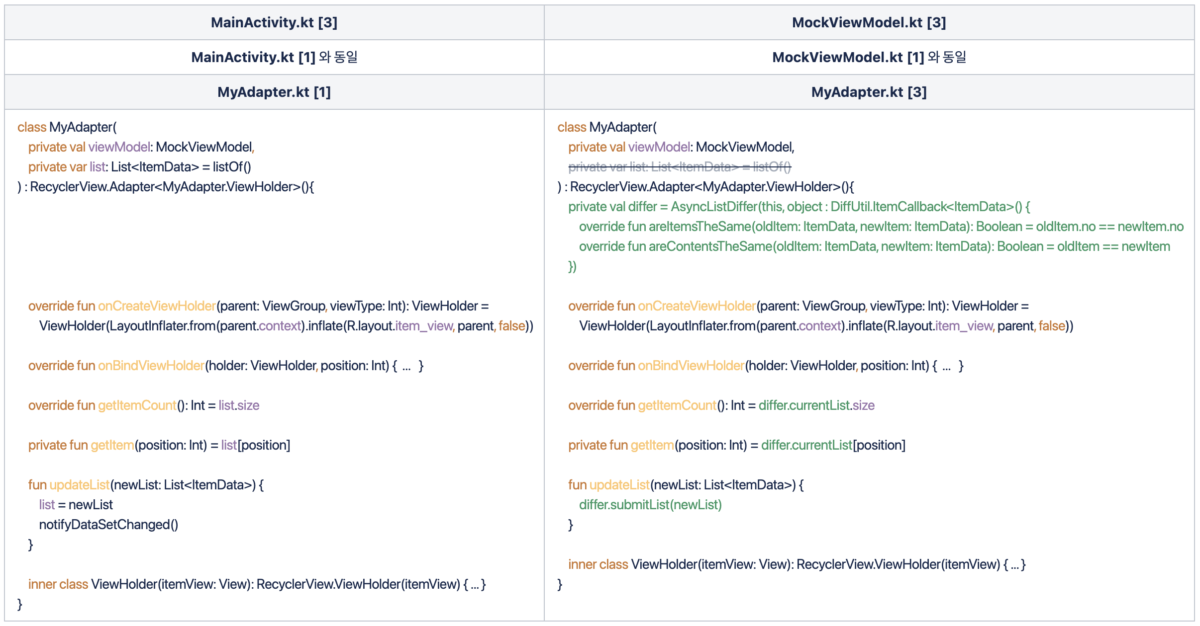 AsyncListDiffer 를 "Sample Code [1]" 에 적용하면