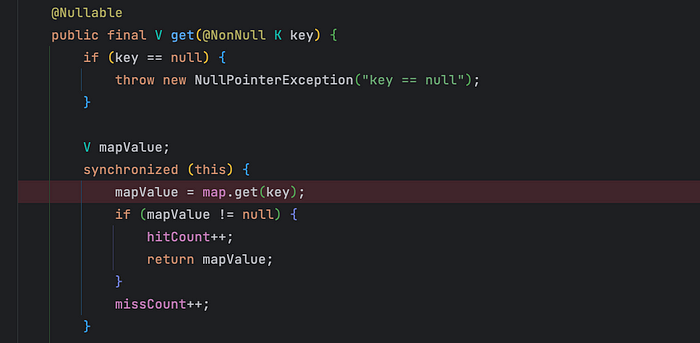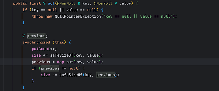 Android의 Lru Cache는 이를 해결하기위해 synchronized() 블록을 이용해 해결하고 있습니다.