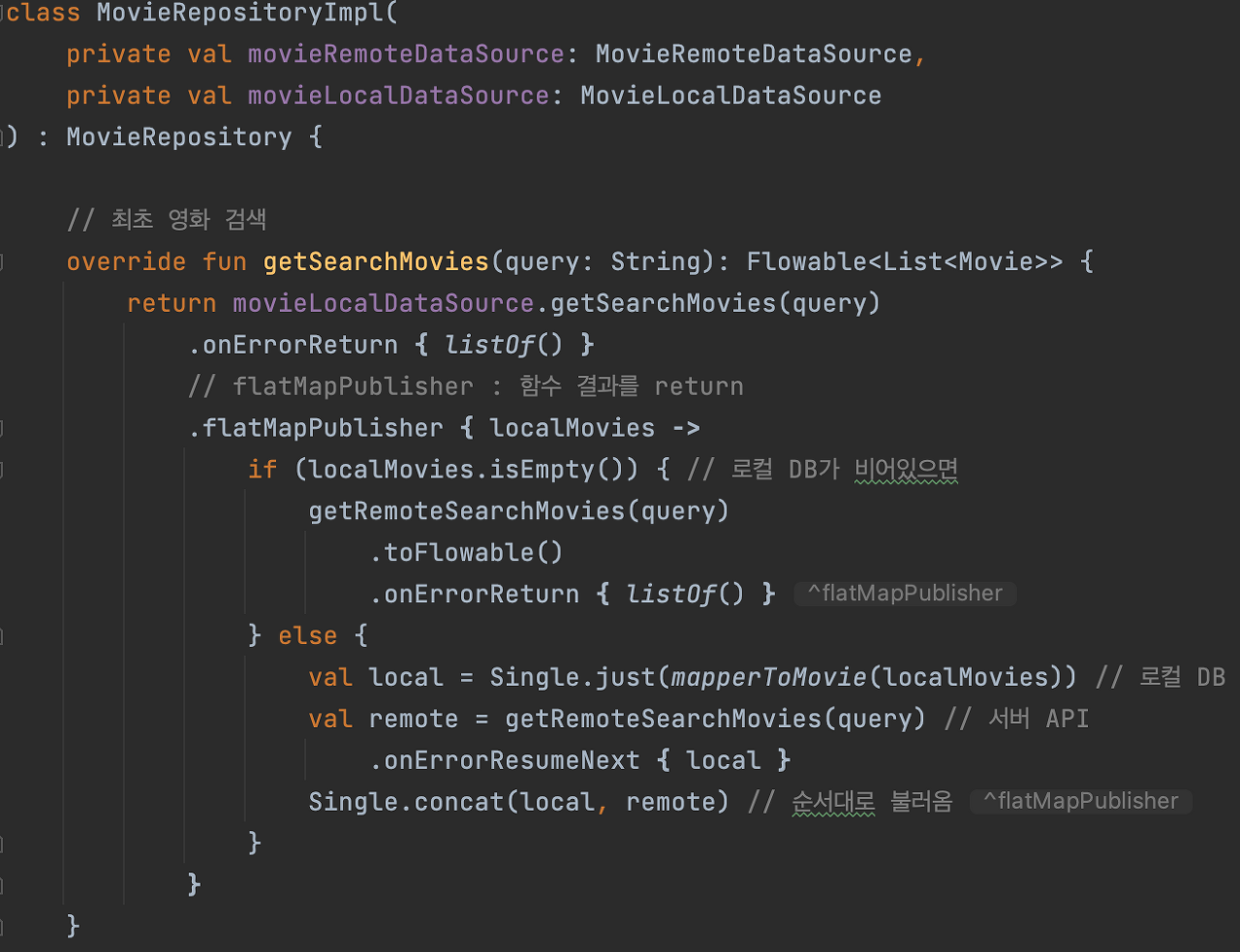이처럼 각 DataSource를 사용하여 원하는 데이터를 Local 혹은 Remote에서 가져오고, 원하는 데이터 타입/형태로 만들어서 return 시켜주면 되는 것이다.