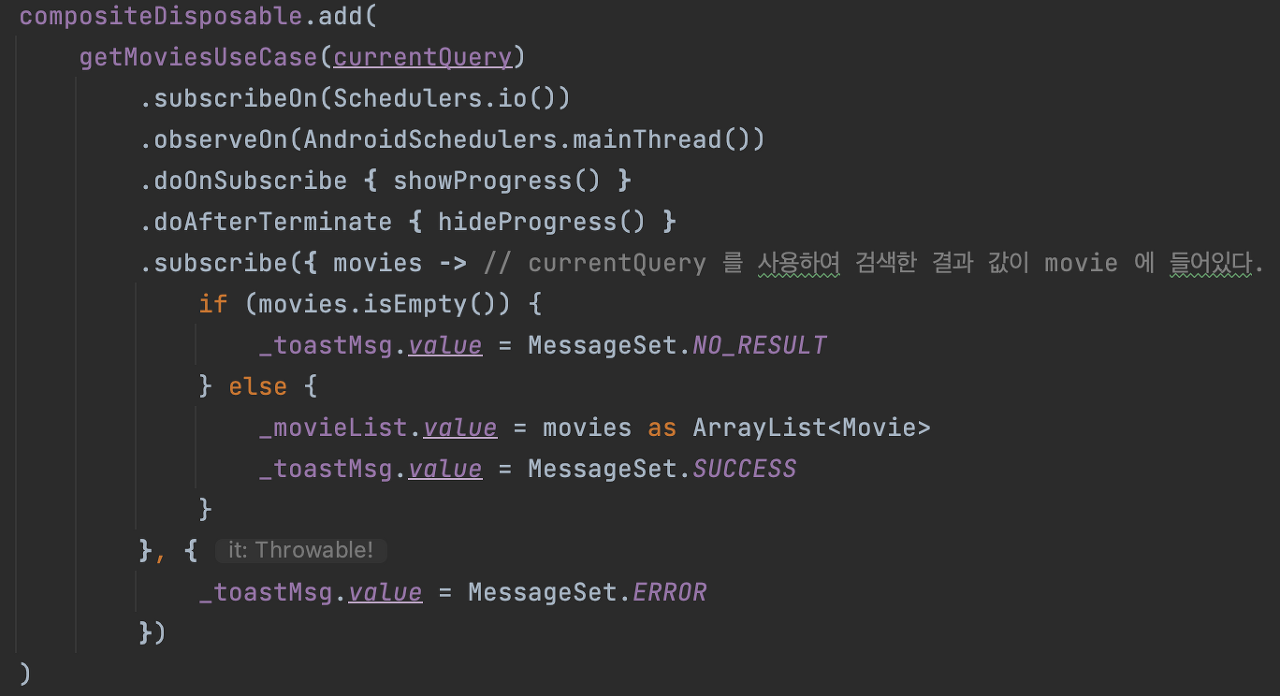이처럼 해당 VM에서 사용하는 Usecase를 주입 하여 필요한 데이터를 가져와서 UI에 뿌려주게 되는 것이다.