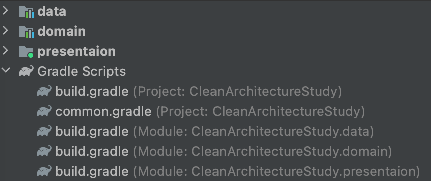 이런식으로, Clean Architecture의 3가지 계층을 모듈로 나누어서 생성하고, 각 모듈에 따른 의존성을 gradle로 추가한다.